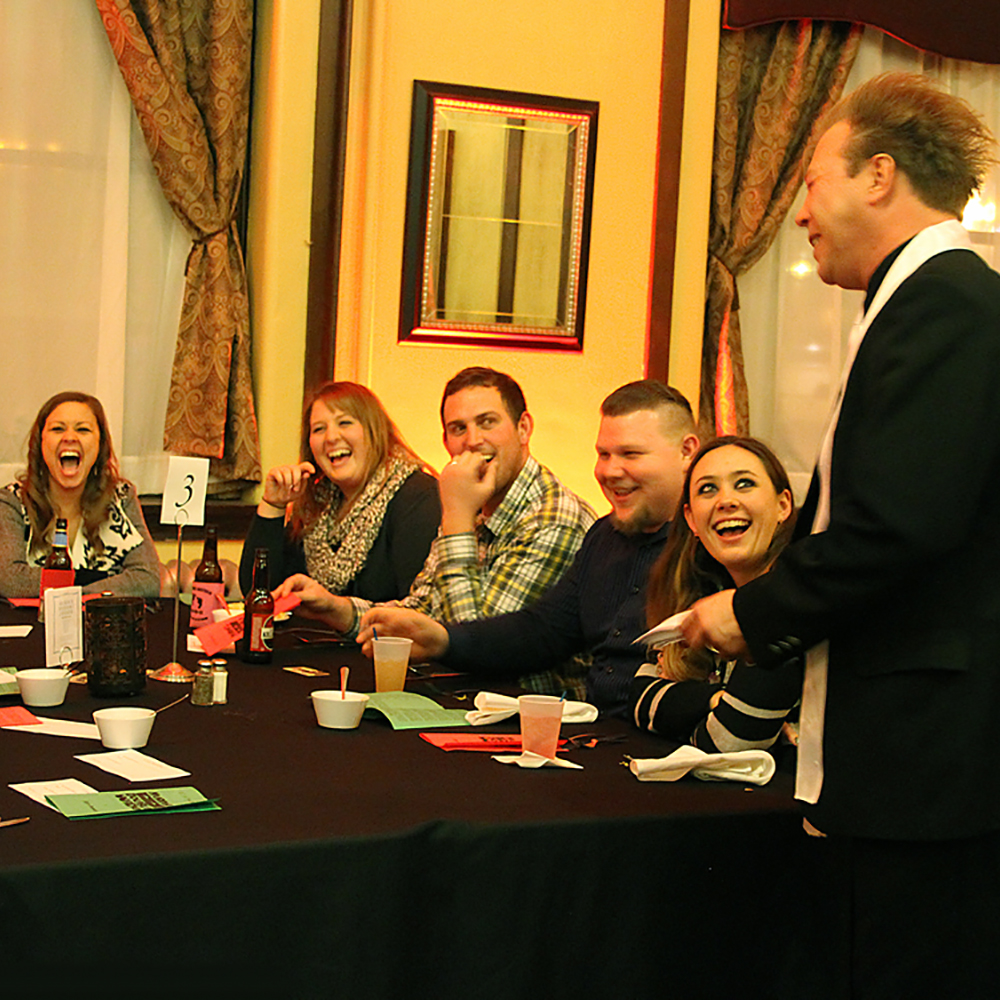 When the show starts, a victim is discovered and the investigation begins. Clues and evidence are passed out for review during the main course, with guests encouraged to question suspects.